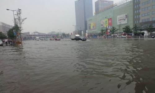 沈城突發(fā)暴雨,接到到處都布滿積水